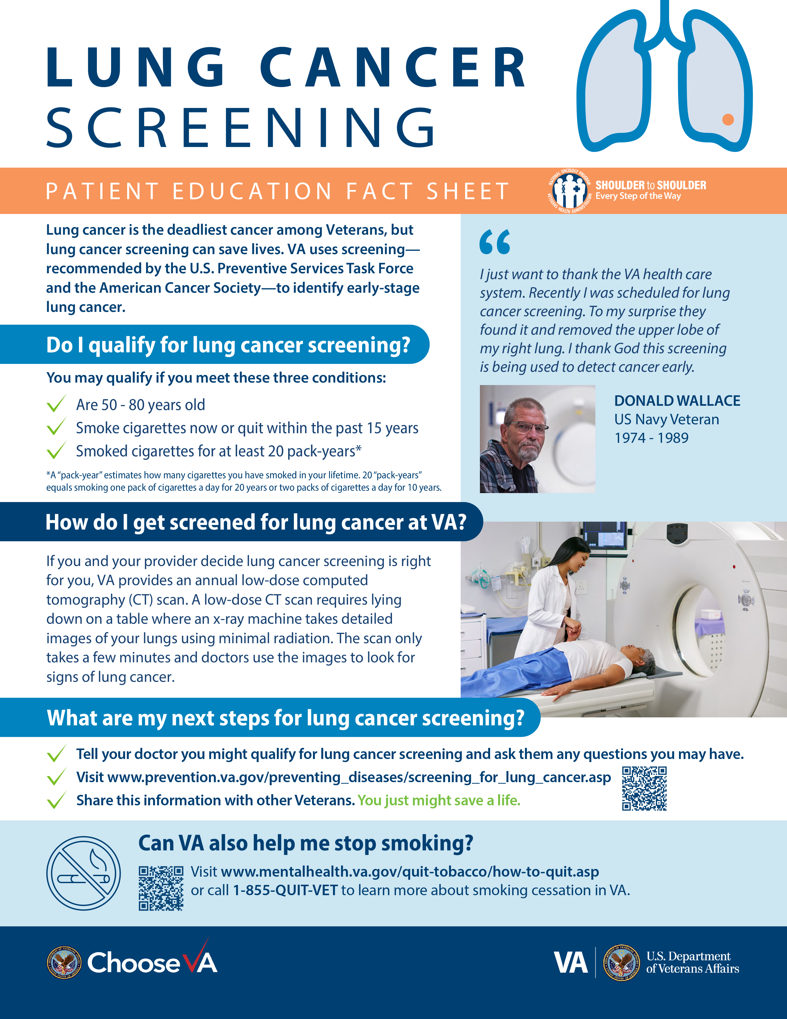 The Lung Cancer Screening (LCS) Program aims to improve lung cancer screening among Veterans, whose cancer often goes undetected until later stages, in an effort to connect them to clinical trials.
