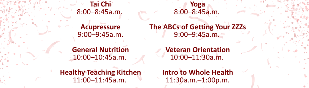 - Intro to Whole Health, 11:30 a.m. to 1 p.m.