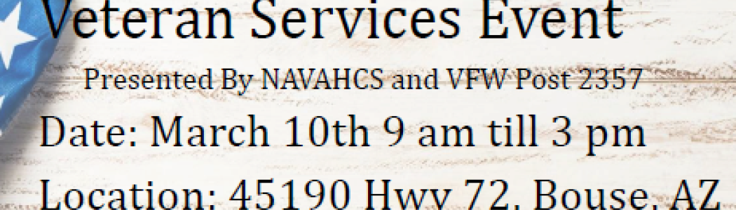 Veterans Services Event taking place at VFW Post 2357 in Bouse on March 10, 2026.