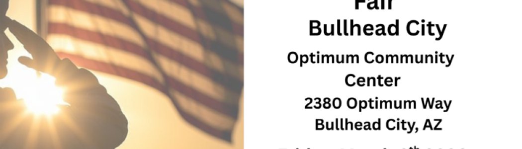 Join us at the Bullhead City Veteran Resource Fair taking place on Friday, March 6, from 10 a.m. to 2 p.m. at the Optimum Community Center.