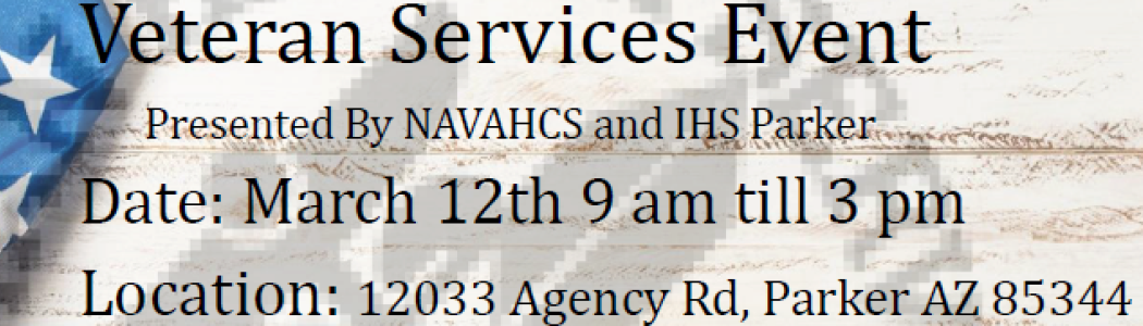 Veterans Services Event taking place at the Parker Indian Health Center on March 12, 2026.